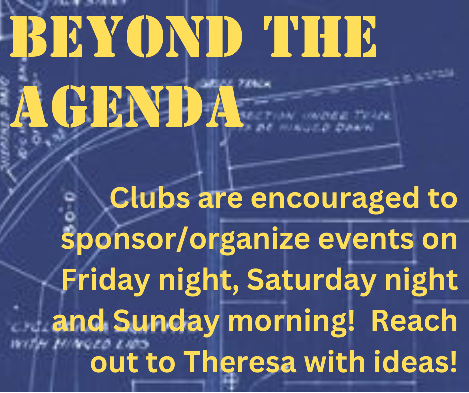 Become part of the team to make this amazing event memorable! We need committee and conference chairs, volunteers, speakers, Masters of Ceremony, sponsors, advertisers and hosts! Would any clubs like to host events on Friday or Sunday?